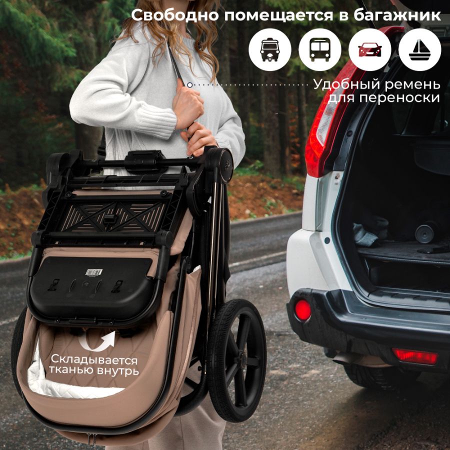 Эта выдающаяся коляска 3 в 1 объединяет в себе прогулочный блок, люльку и полный комплект аксессуаров, что делает её незаменимым помощником в любых ситуациях.