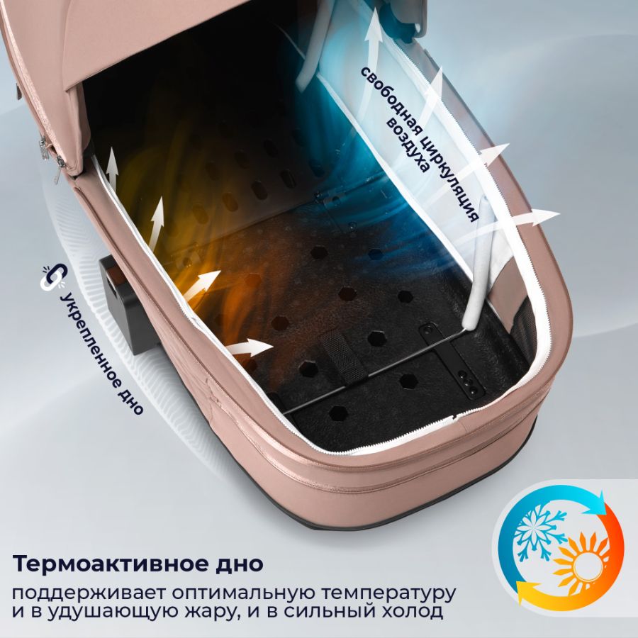 Уникальное термоактивное дно люльки поддерживает оптимальную температуру, позволяя вашему ребенку наслаждаться свежим воздухом и уютом даже в самые прохладные дни.