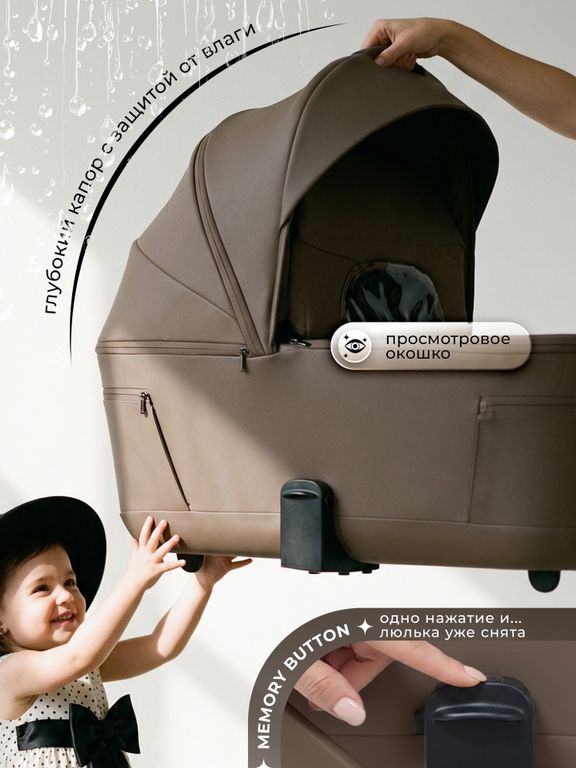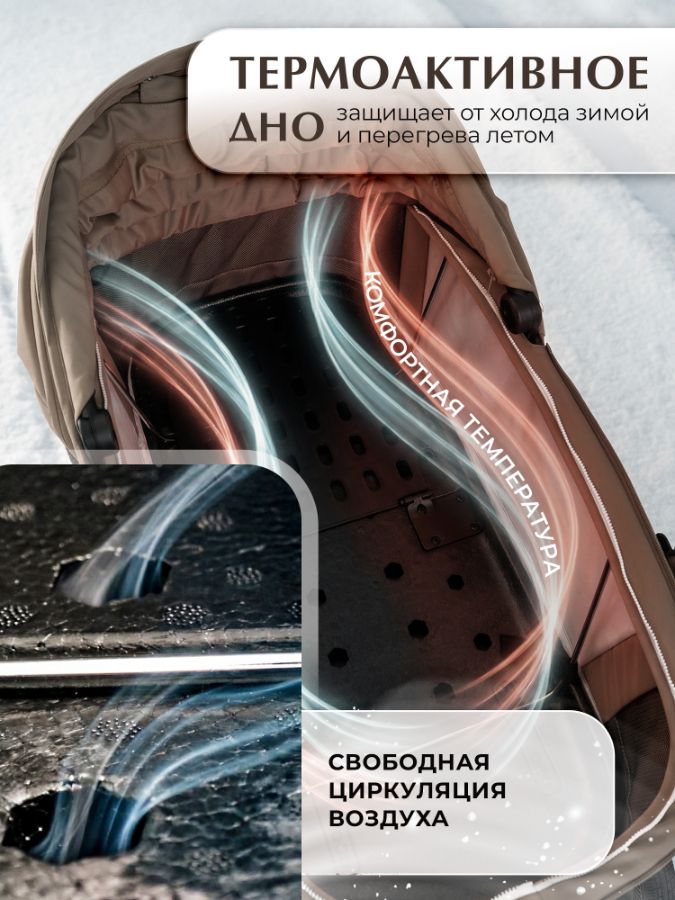 - Термоактивное дно люльки поддерживает оптимальную температуру и защищает от переохлаждения зимой и перегрева летом.