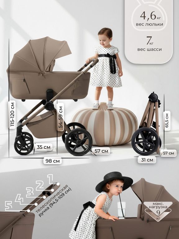 - Регулируемая телескопическая ручка позволяет настроить высоту под любой рост родителей, обеспечивая интуитивное управление без лишних усилий.