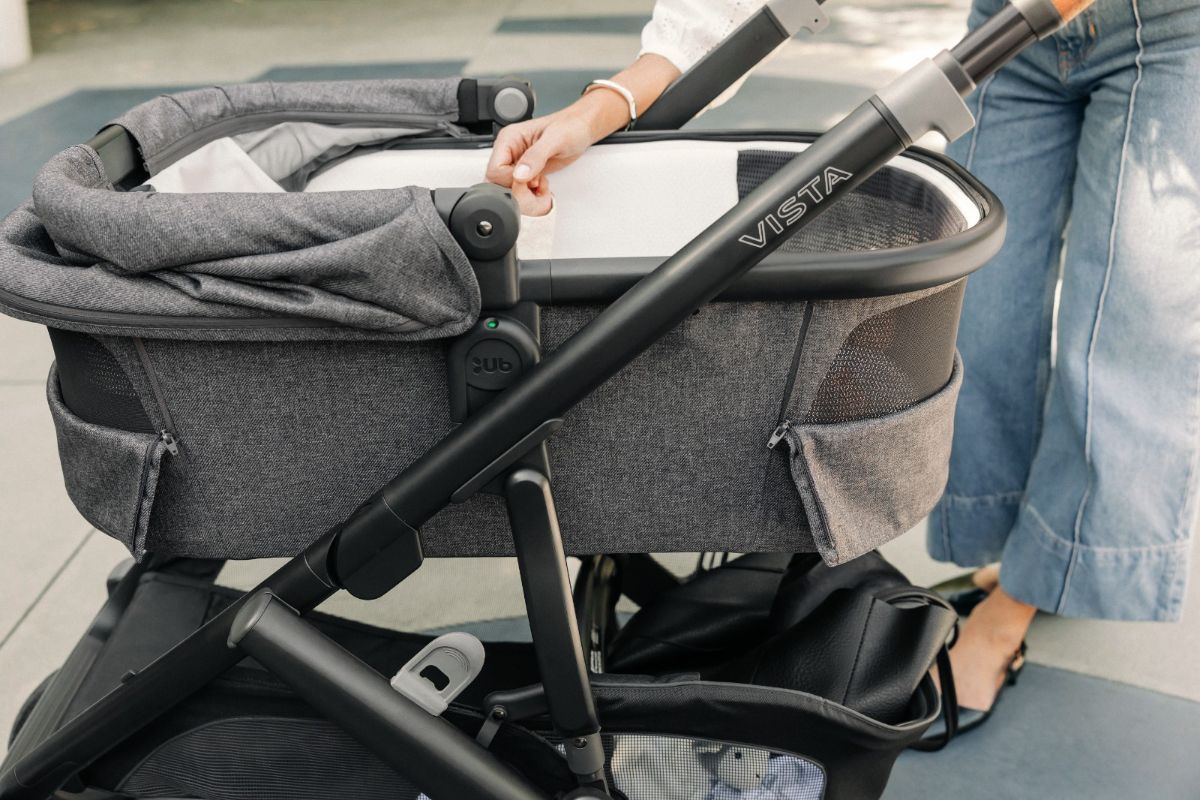 Как снять и установить корзину для покупок на шасси коляски UPPAbaby Vista V3