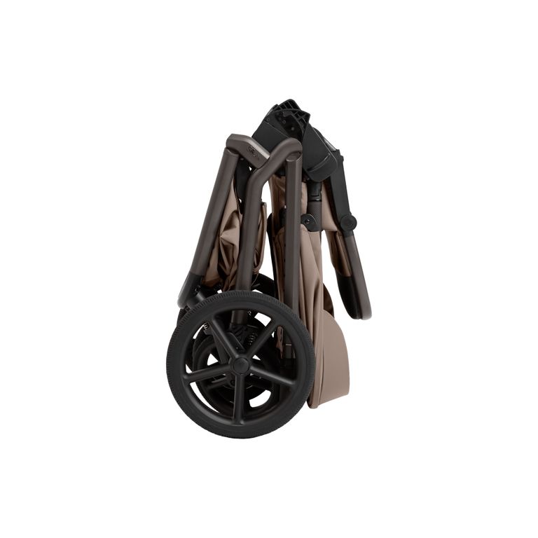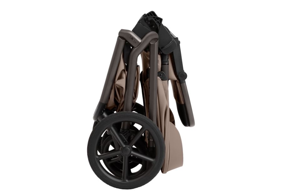 - Компактное складывание коляски одним нажатием кнопки — это удобно и быстро! Коляска складывается с прогулочным блоком в обоих направлениях.